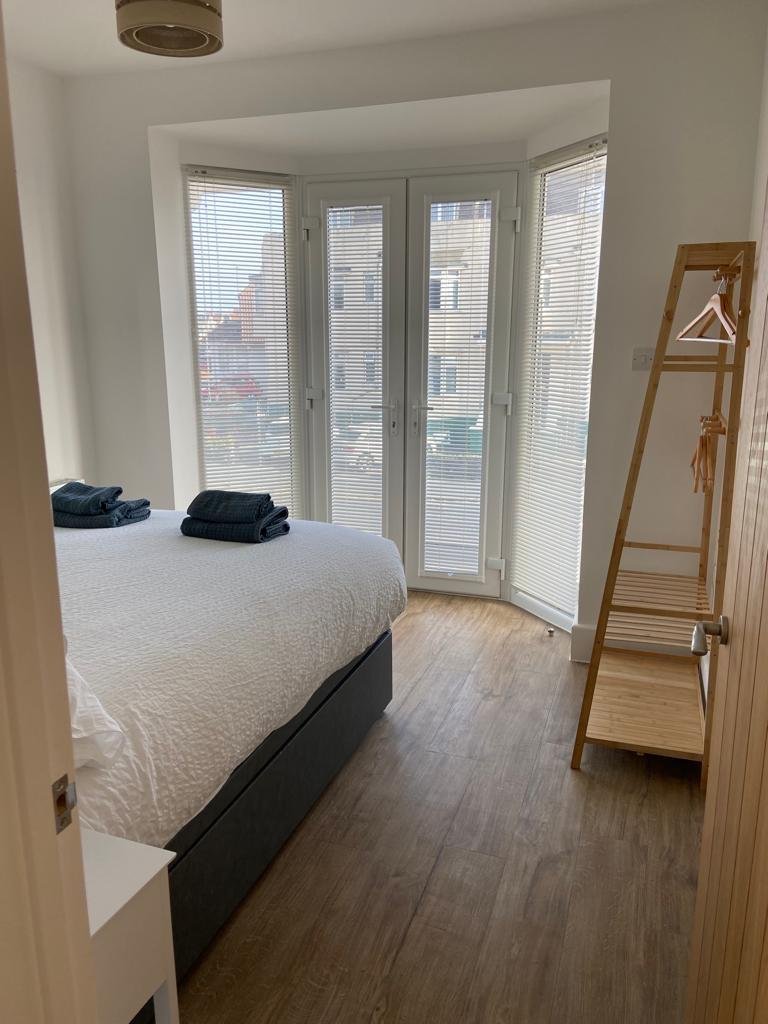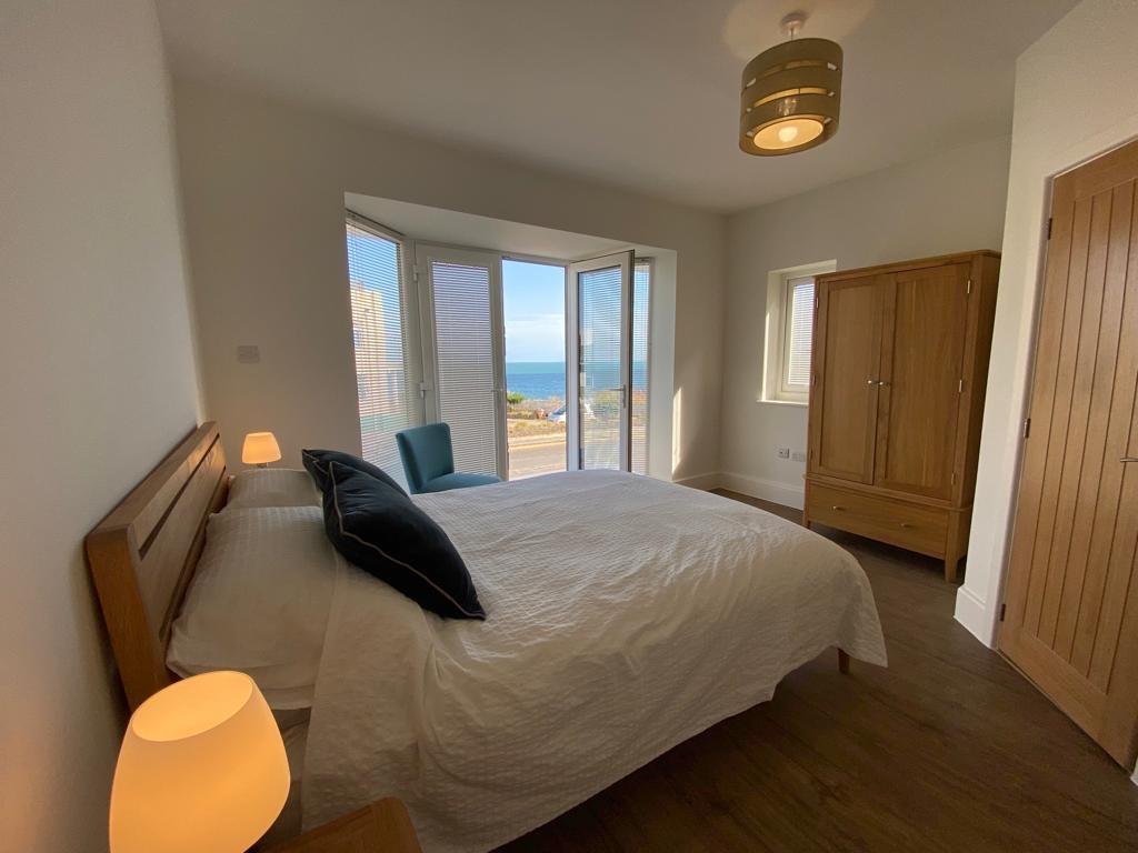 A king-sized bed with an en-suite, balcony and sea views of the Dorset coast